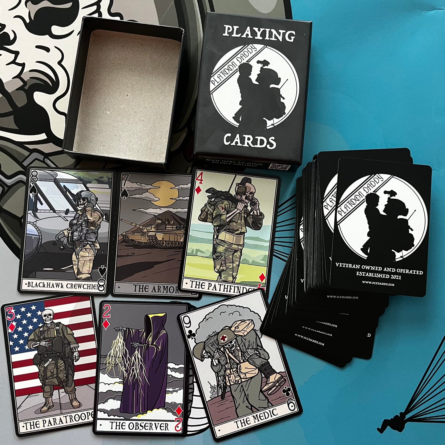 Every card is a unique custom design (52 plus two Jokers)